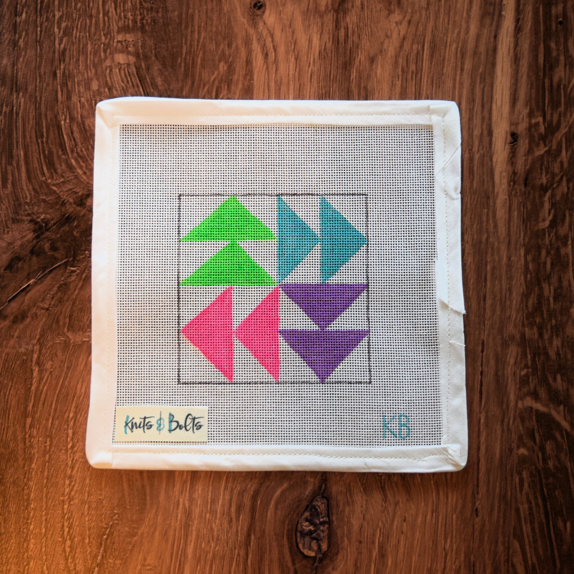 Are you a quilter with a stitching habit? Then this is the canvas for you! Flying Geese are a classic quilt block but we've given them a modern twist with these fun neon colors. These would make an adorable ornament for you or a quilting friend in your life. Or have them finished into a set of coasters! Thread Kits to come!