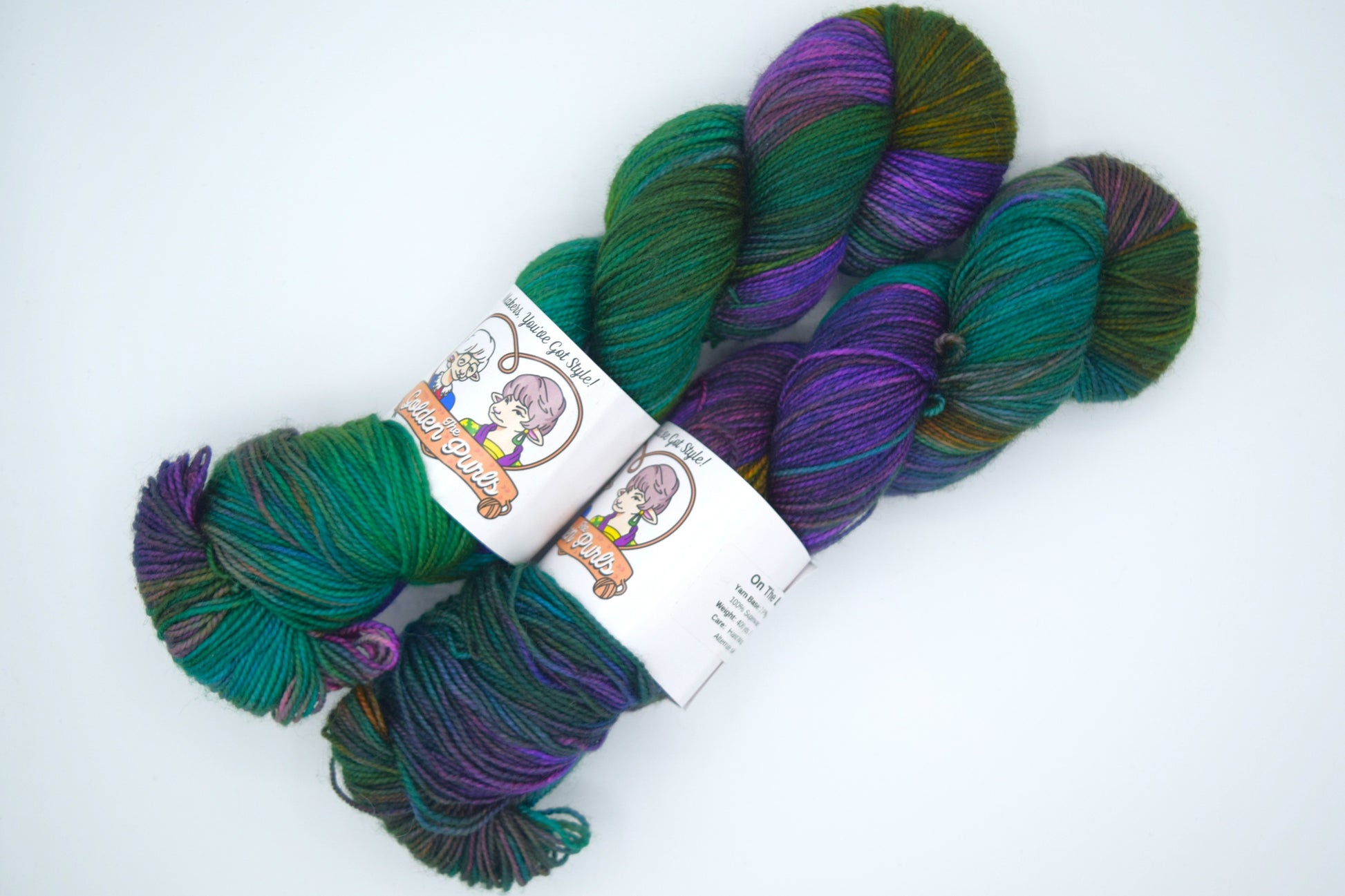 The Golden Purls is a hand-dyed superwash wool fingering yarn inspired by the wit and warmth of the Golden Girls. This 2-ply construction offers versatility for both delicate sock projects and flowing shawl designs. The superwash treatment ensures easy care without compromising the yarn's natural softness and elasticity. Each skein features unique color variations from the hand-dyeing process, making every project distinctly personal. Perfect for knitters and crocheters seeking quality yarn with character and charm.